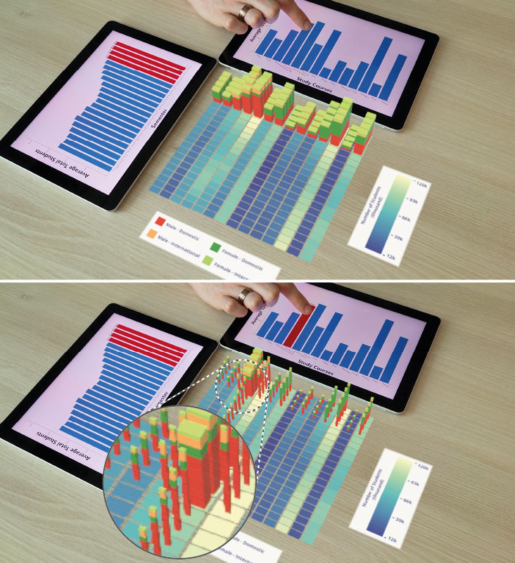 By leveraging the strengths of both technologies — mobile devices’ tangibility and precision input, and AR’s flexible, immersive display space — MARVIS addresses the limitations of small screens and supports complex analytical tasks.